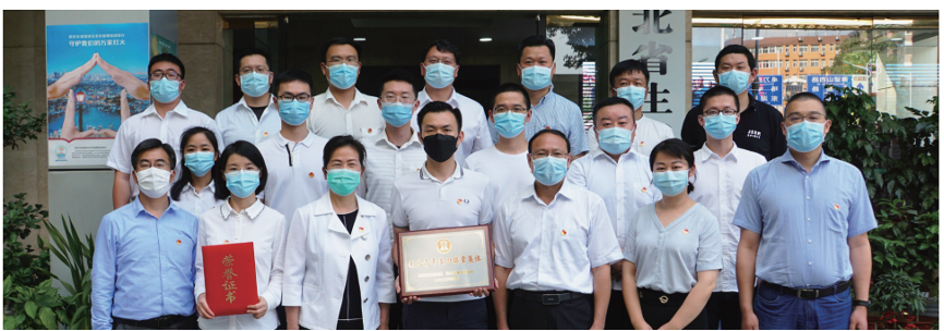 2020年5月省环科院涉疫环境防控冲锋队获得“五四青年奖集体”,与省厅领导合影留念